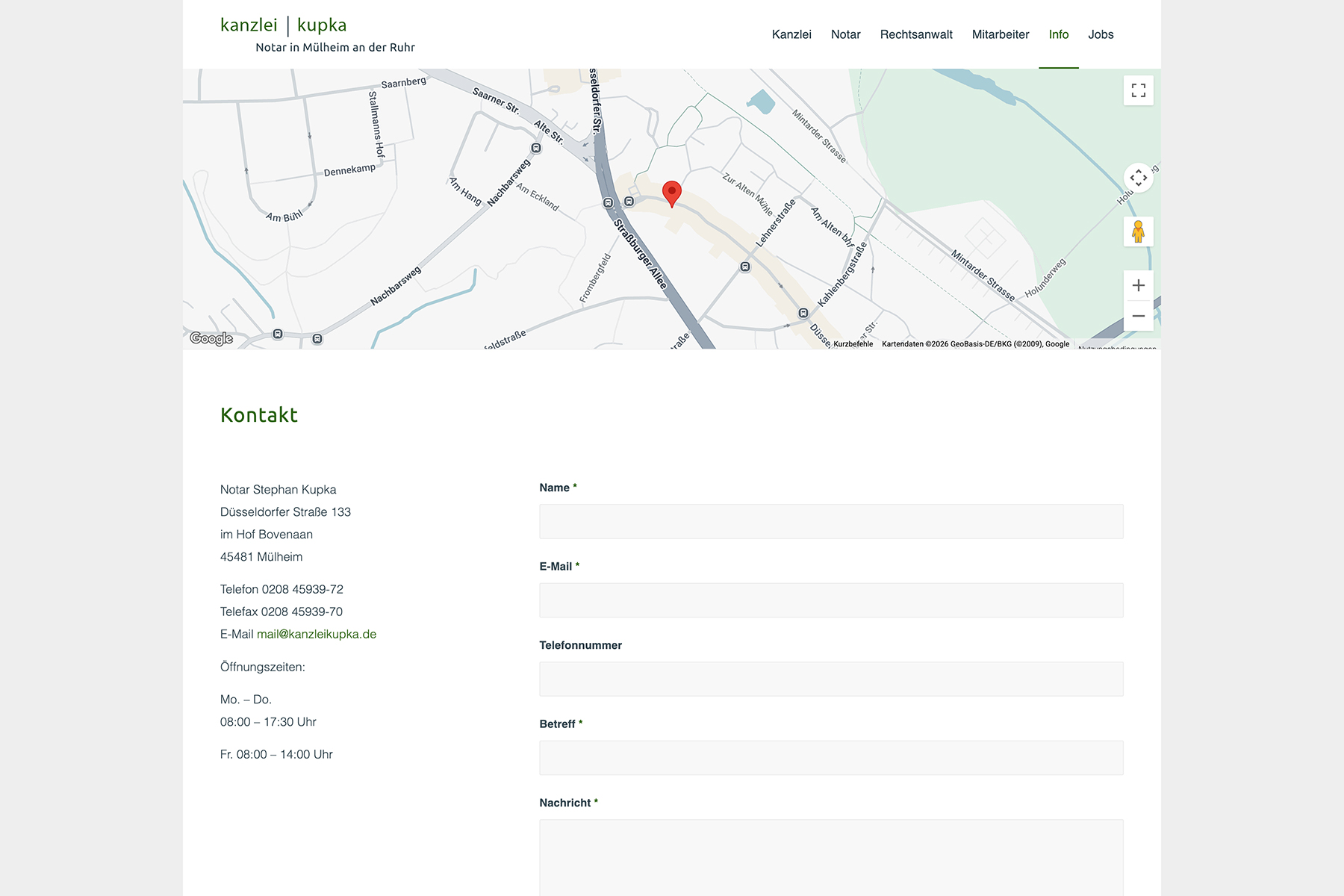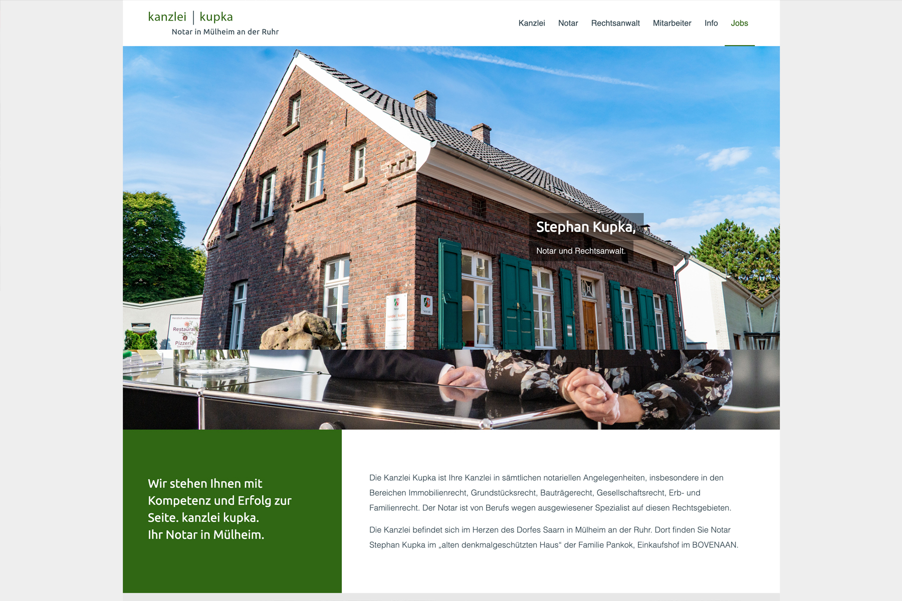 Für die Kanzlei Kupka, einen Notar aus Mülheim, haben wir eine WordPress-Website umgesetzt, die rechtliche Informationen klar strukturiert und die Kanzlei professionell präsentiert.