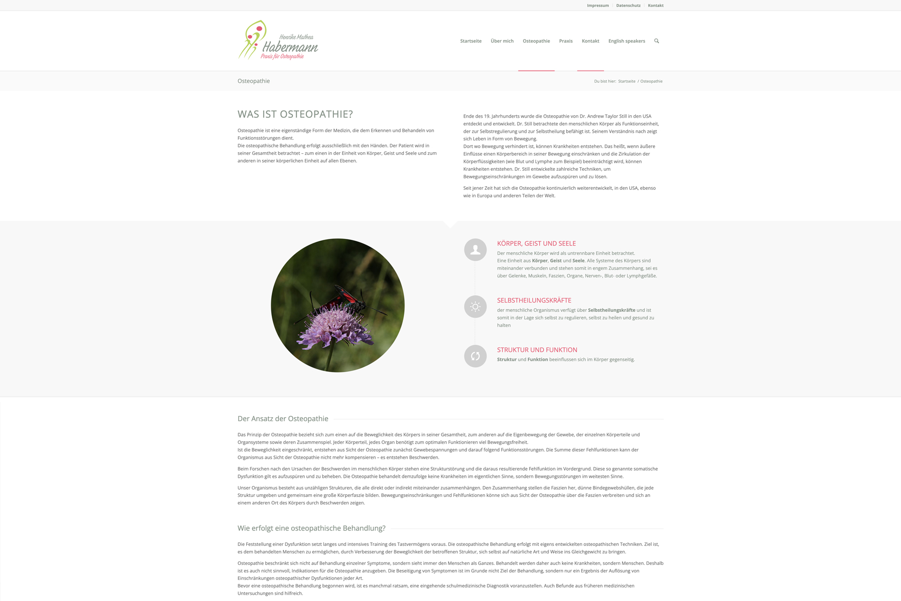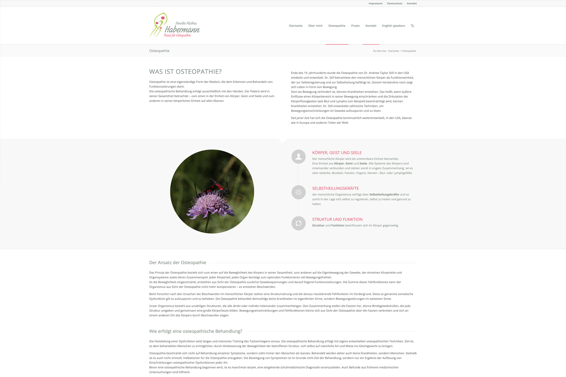 Die klare Struktur erleichtert den Zugang zu Informationen und unterstützt die Praxis Osteopathie Habermann bei der digitalen Außendarstellung.