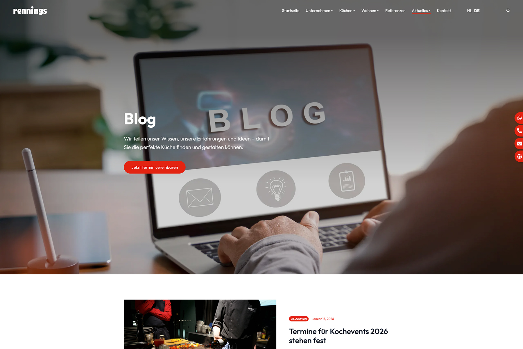 Für Rennings haben wir eine WordPress-Website umgesetzt, die das Unternehmen klar und übersichtlich präsentiert.