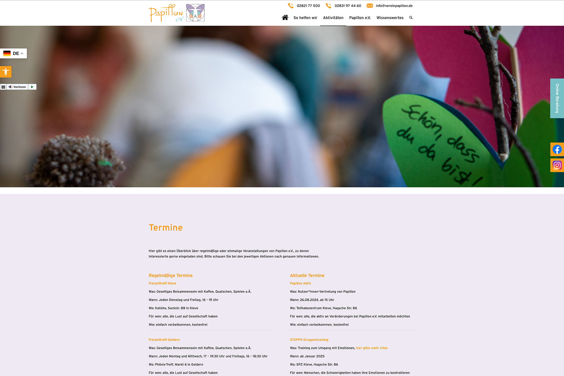 Das Ergebnis ist eine verständliche und inklusive Website, die den Anspruch des Vereins Papillon konsequent widerspiegelt. Die Kombination aus Mehrsprachigkeit, barrierearmer Gestaltung und Vorlesefunktion sorgt dafür, dass Informationen möglichst vielen Menschen zugänglich sind.